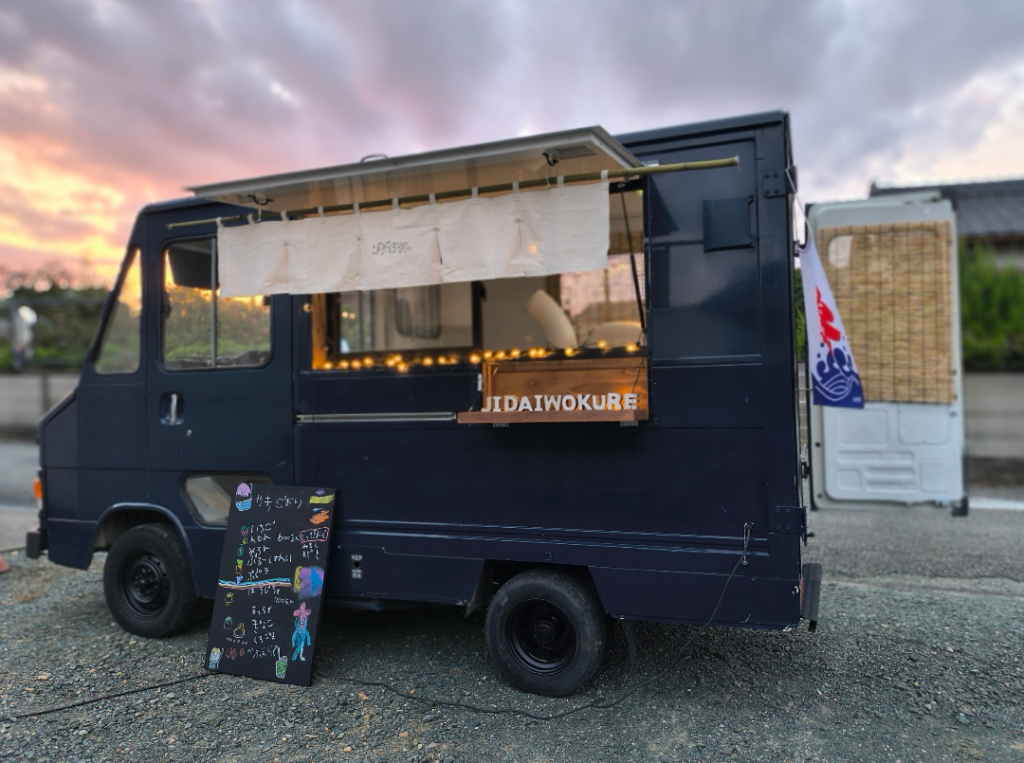 その他スイーツ系ドリンク系粉物 時代をくれ 基本情報 紺色のキッチンカーで、クレープ、かき氷、コーヒー、カフェラテ、ビール、ハイボール、唐揚げ、ポテトを販売しています。 屋号時代をくれ出店エリア豊橋市・豊川市・蒲郡市・田原市新城市・設楽町・東栄町提供メニューかき氷、から揚げ、カフェラテなど かき氷700円 唐揚げ600円 カフェラテ500円 ポテト400円